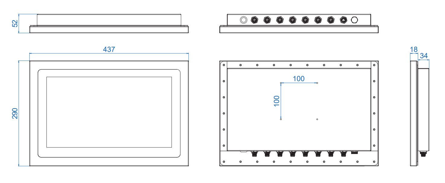 | Опции | Источник питания PWA-120W, PWA-160W-WT, комплект для монтажа в панель Panel-Mount, настольное крепление VESA-Mount |