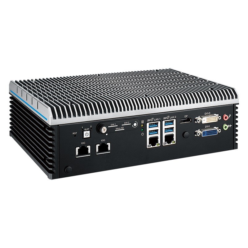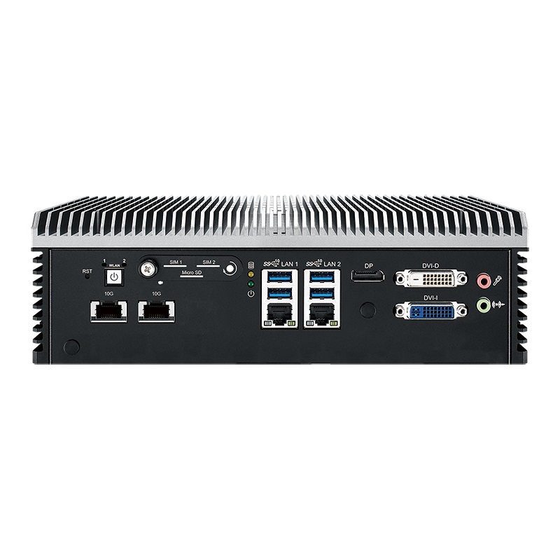 Безвентиляторный встраиваемый компьютер (Intel XEON / Core i9/i7/i5/i3 Processors 10-gen (Comet Lake-S) Socket 1200 с TDP до 65Вт, Display Port, DVI-I, DVI-D, 6xGLAN (4 с POE IEEE 802.3at) + 2x10G (RJ45), 6xUSB3.2 1xUSB2.0 внутренний, 4xRS232/422/485 (ESD 8KV), 2xSATA (RAID 0,1), mSATA, M.2 Key M Socket, 2x Nano SIM, Micro SD, 1 слот MiniPCIe, 2xM.2 (1xKey B+ 1x Key E), 16 DIO с изоляцией, 2 корзины для накопителей 2.5", питание 9...50В DC, расширенный диапазон температур -40...+55)